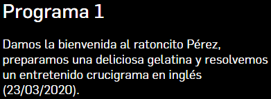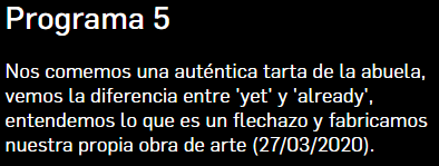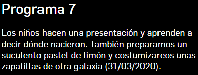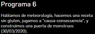 Here you have a list of the last 7 programmes in case you miss them.