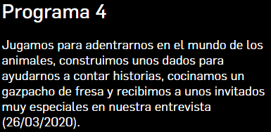 Every day at 13:25 in Boing you can enjoy this programme where you can learn and practice English with the family while schools are close. This programme enhance values such imagination, creativity and initiative.